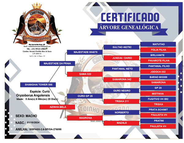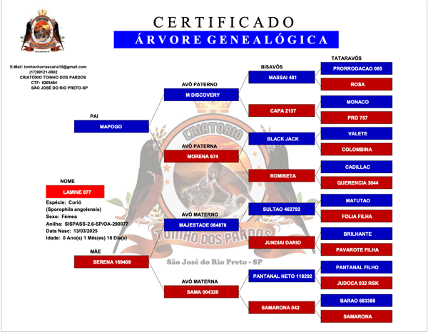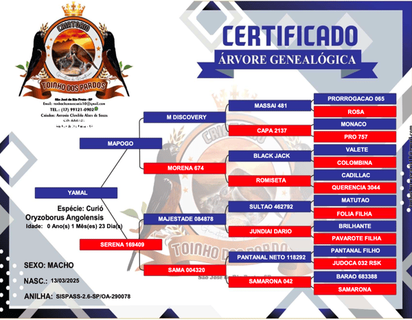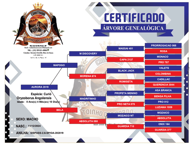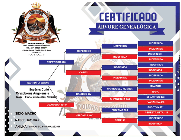 Conheça nossos Filhotes e suas árvores genealógicas.